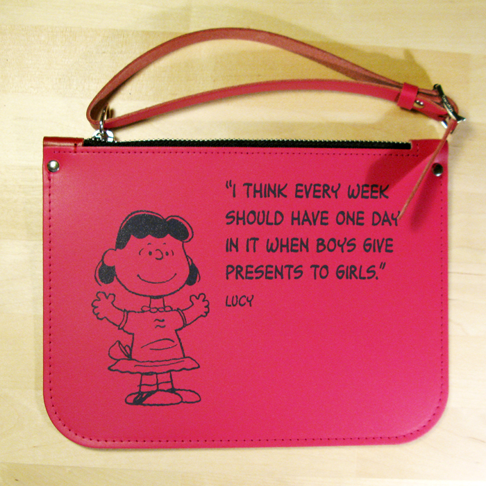 The Peanuts Zip Pouch is the perfect size to slip into a purse. I currently love having pouches in my purse to organize all the little things. It makes it so easy to lighten the load or throw in extras, like camera accessories, without a lot of fuss. Plus, this pouch has a handy, adjustable wrist strap to make it easy to just take what you need. The pouch is the perfect size for pens, smaller wallets, makeup, your phone, even a compact camera. It’s also quality leather, sure to last a long time.