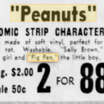 While researching these dolls, I had much annoyance at trying to figure out which dolls came out when. Sally was easy, since she didn’t exist when the first set of dolls was released. Schroeder and Pigpen were sometimes lumped in with the original release. If the original release was for 8″ dolls, where are these smaller versions of Schroeder and Pigpen? Are they so rare that they don’t turn up frequently enough? After scouring the archives available to me and reading collector guides, I am going with Schroeder and Pigpen were not available until 1961. Anyone with any hard evidence to the contrary, please email me at info@collectpeanuts.com.