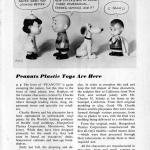 The Hungerford Plastic Corporation started in 1946. They are most remembered for their plastic dolls for a wide range of 1950’s and 60’s cartoon characters including Disney dolls, Harvey-toons and Rocky and Bullwinkle. The first line-up of about 7″-8″ dolls were introduced in 1958 which included Charlie Brown, Linus, Lucy and Snoopy. Following the initial success, they were released in a slightly larger size, around 9″-10″ tall, in 1961. This also saw the addition of baby Sally, Schroeder with his piano and Pigpen to the line-up. The dolls came in a clear, plastic bag with a yellow header on top featuring a comic strip on each side.