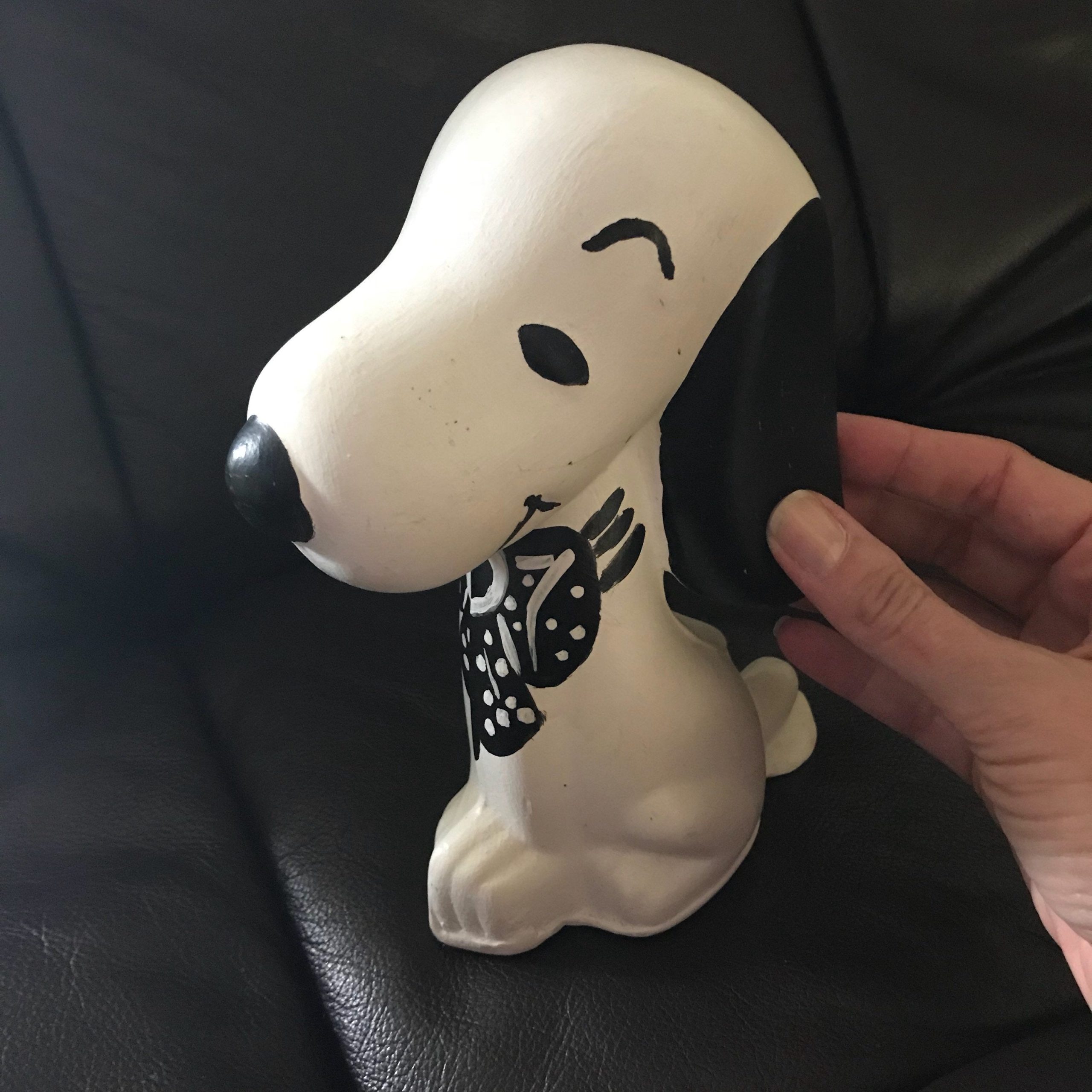 All the Hungerford Peanuts characters are represented as painted, ceramic craft figurines, except Snoopy. There is a Snoopy, but he’s not a Hungerford Snoopy. Lego Japan (NOT the interlocking toy bricks company) made a Snoopy composition bank that seems to be the “original”. The Snoopy composition bank is also not licensed, as far as I have seen. Lego Japan did make licensed Peanuts bobbleheads, which are also coveted Peanuts collectibles.