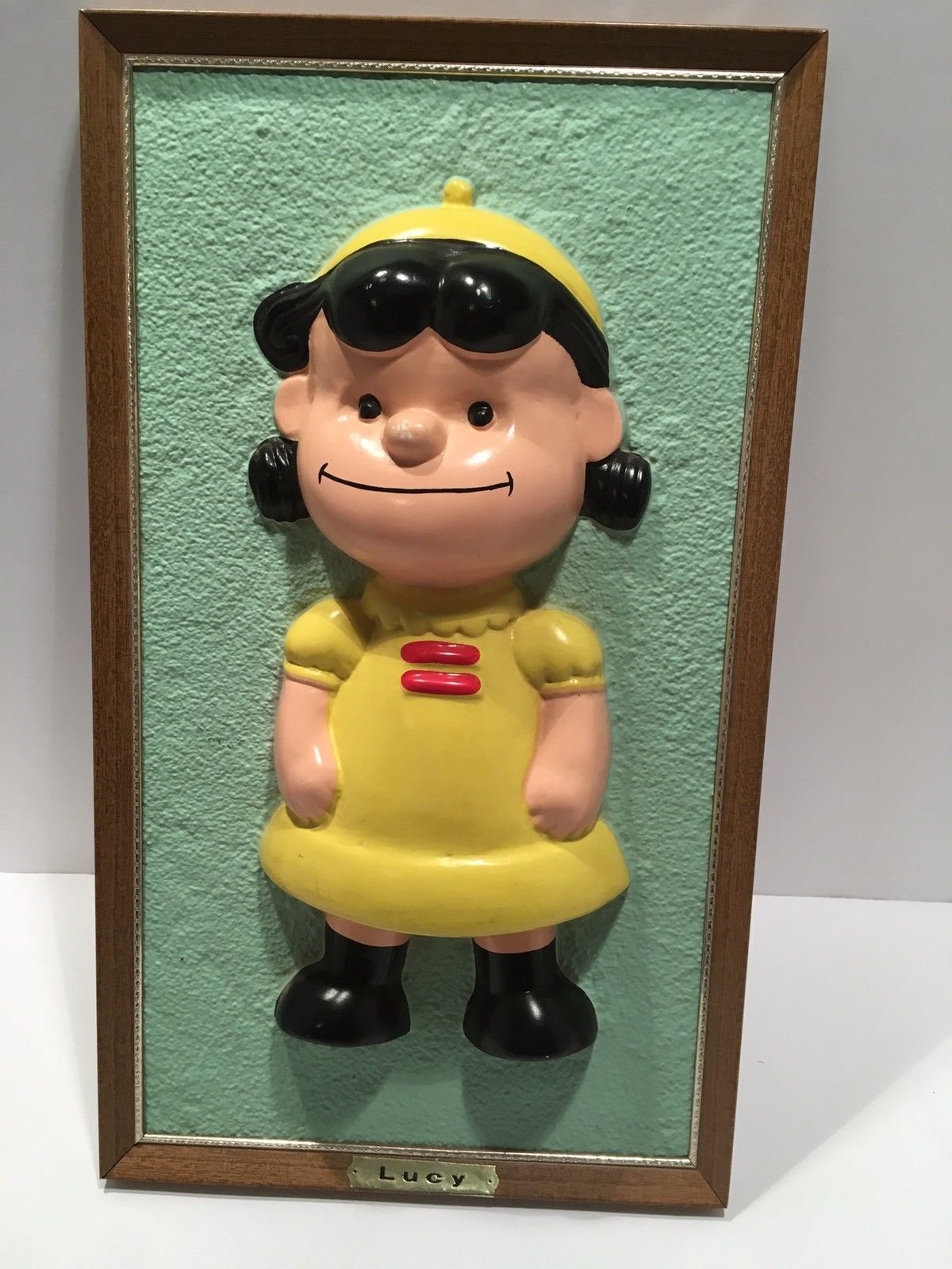 If you thought Peanuts Hungerford dolls weren’t cuddly, try a wall plaque! In the late 1960’s, a licensed series of vacu-formed wall plaques were released by an unknown manufacturer. Vacuformed pieces are created using a thin sheet of plastic formed over a mold. This makes for a very fragile Peanuts Wall Plaque. They are prone to cracks and dents, plus paint loss on raised areas.