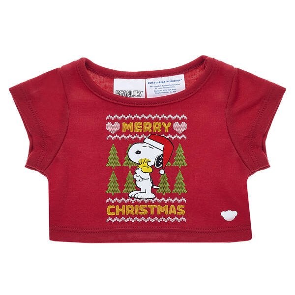 Fashionable Snoopy also has some new outfits. The Flying Ace pilot outfit is the same as the 2015 Movie version, with an updated tag. The pilot’s outfit includes his jacket, hat with goggles and scarf. For the winter months, Snoopy has a red, puffy, winter jacket and matching ushanka hat. Christmas is coming and Snoopy is ready with a cute Christmas t-shirt. All the Build-a-Bear outfits fit Snoopy, so you’ll have no end of choices! Dress Snoopy up as Batman, Captain America or your favorite NFL team uniform. Pick from a variety of t-shirts for all sorts of occasions like birthdays, holidays or just to say thanks.
