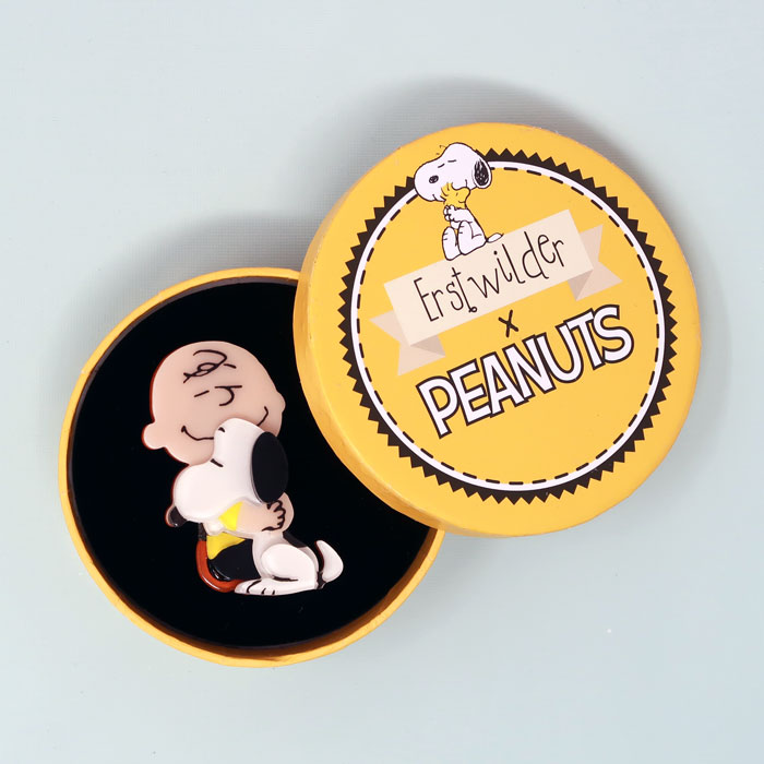 In addition, you’ll love the jewelry packaging! Just when you think things couldn’t get cuter, you see the delightful boxes the jewelry pieces arrive in. The yellow, round boxes are ringed with the classic Charlie Brown zig-zag. On top, the Erstwilder X PEANUTS logo is emblazoned. Inside, you’ll find a velvety pad to keep your jewelry safe. Plus, there’s the story of Peanuts and care instructions for your piece. A perfect way to display your jewelry even when you’re not wearing it.