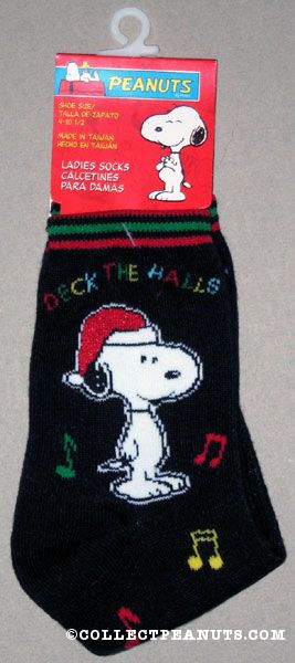 Snoopy wearing santa hat ‘Deck the Halls’ Ladies Socks