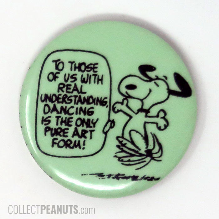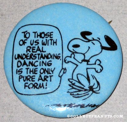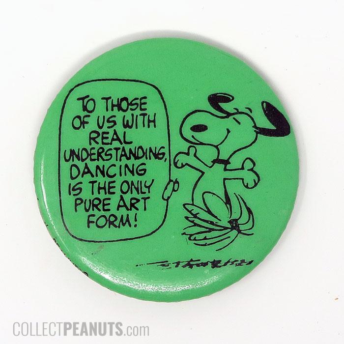 Snoopy ‘To those of us with real understanding, dancing is the only pure art form!’ button