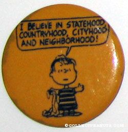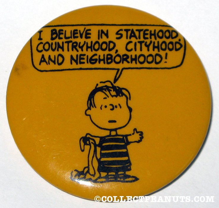 Linus ‘I believe in statehood, countryhood, cityhood and neighborhood!’ Pinback Button