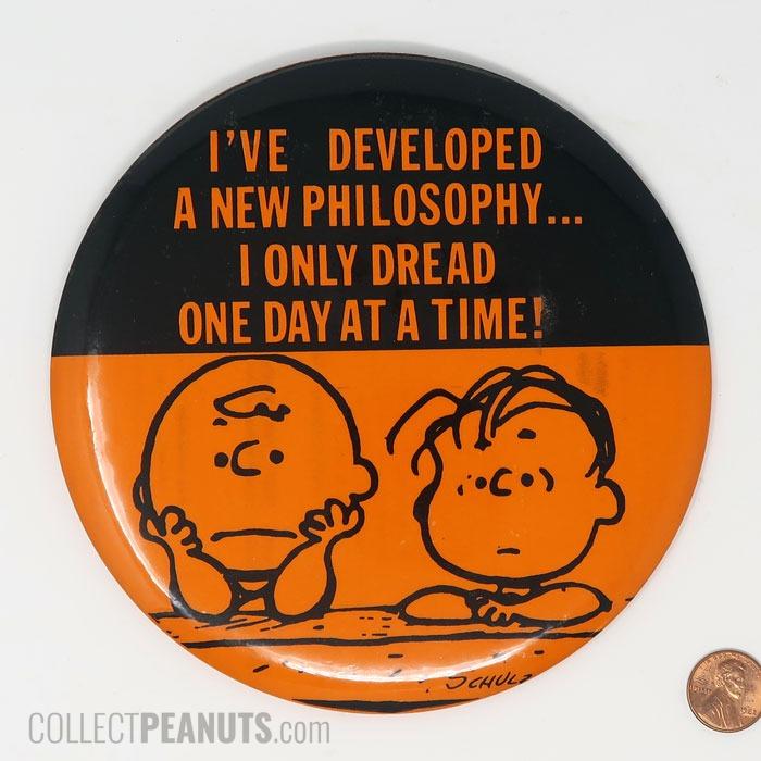 Charlie Brown and Linus ‘I’ve developed a new philosophy… I only dread one day at a time’ over-sized Button