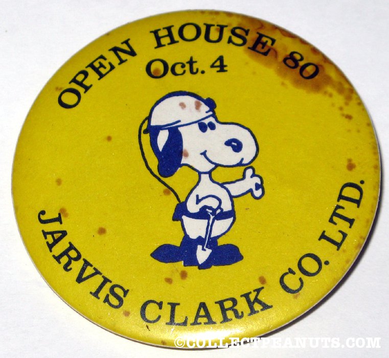 Snoopy dressed as Miner ‘Jarvis Clark Co. Open House 80’ Button