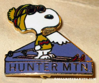 Snoopy on Skis with goggles in front of Mountain ‘Hunter MTN’ Pin