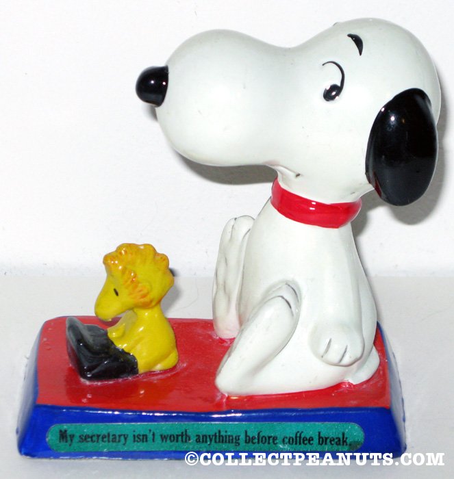 Woodstock at typewriter with Snoopy ‘My secretary isn’t worth anything before coffee break’ Figurine