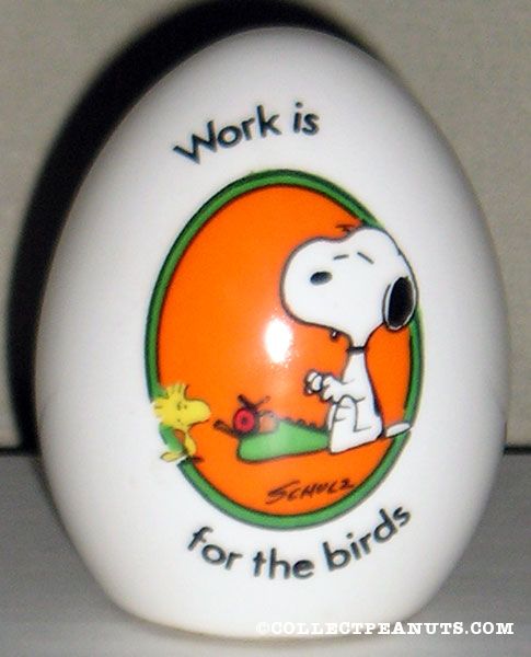 Snoopy at typewriter ‘Work is for the birds’ Egg Figurine