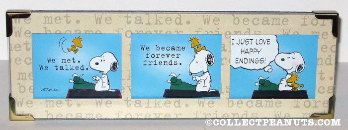 Snoopy and Woodstock at typewriter ‘Happy Endings’ Framed Comic Strip Art