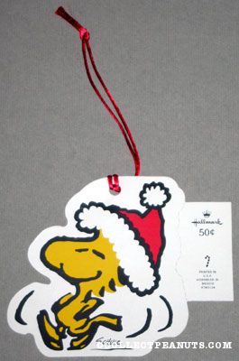 Snoopy bring wrapped by Woodstocks Christmas Gift Tags