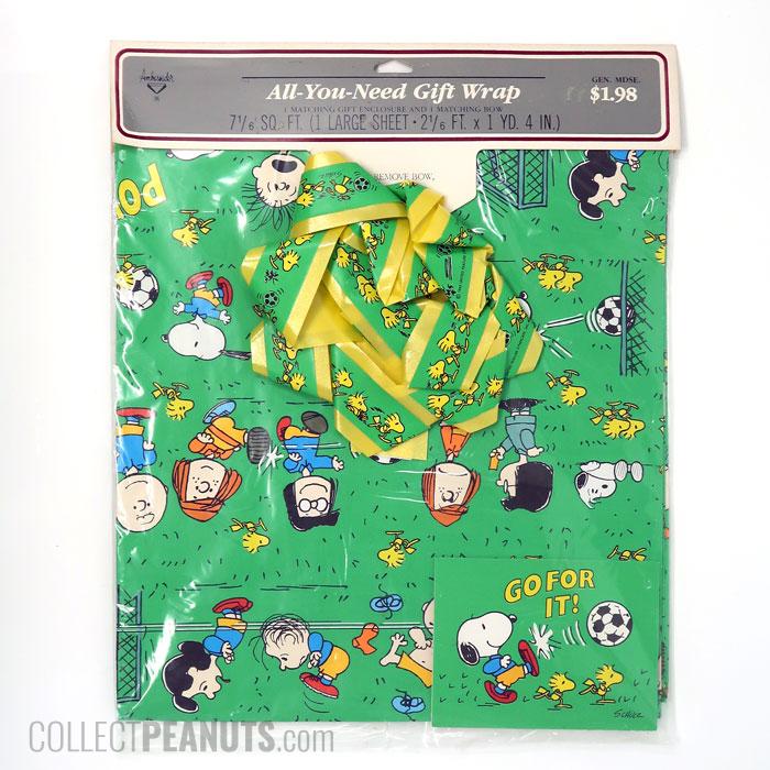 Peanuts Gang Soccer Gift Wrap with Bow and Card