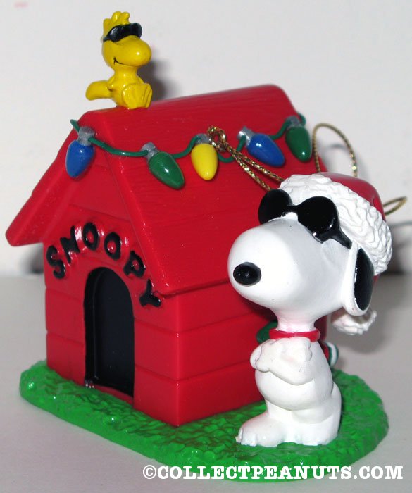 Joe Cool and Woodstock with decorated doghouse Ornament