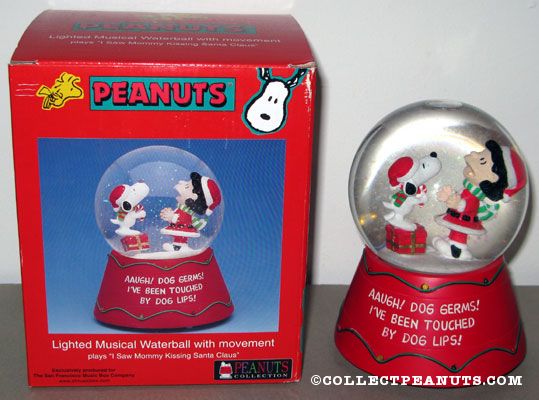 Snoopy kissing Lucy Christmas Snowglobe Musicbox