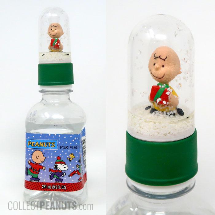 Charlie Brown with Gift Snow Globe on Peanuts Bottled Water