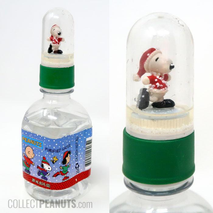 Santa Snoopy Skating Snow Globe on Peanuts Bottled Water