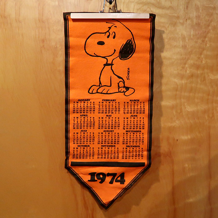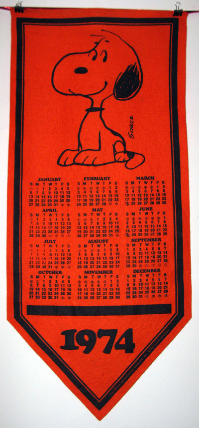 Snoopy sitting 1974 Calendar Pennant