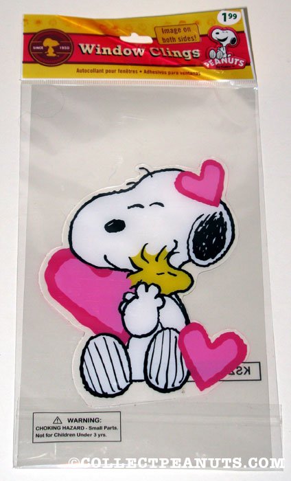 Snoopy hugging Woodstock with Valentine’s Day Hearts Window Cling