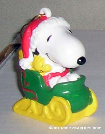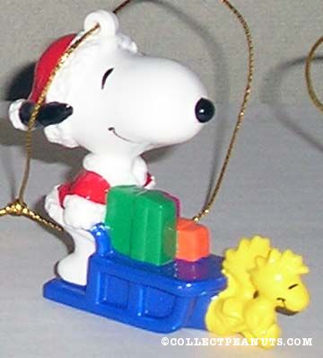 Santa Snoopy Sled Being Pulled by Woodstocks Ornament
