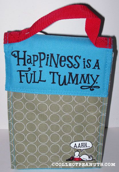Snoopy laying in dogdish ‘Happiness is a full tummy’ Cloth Lunch Bag