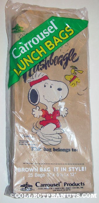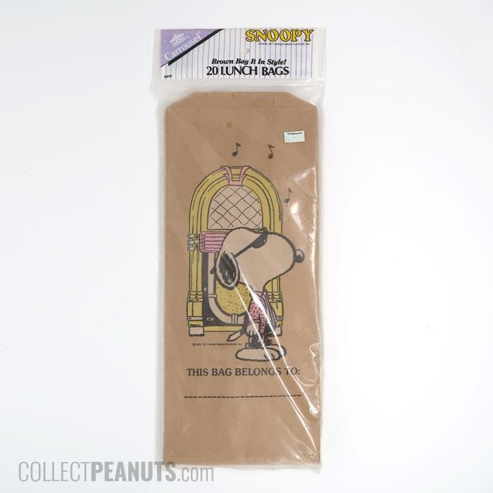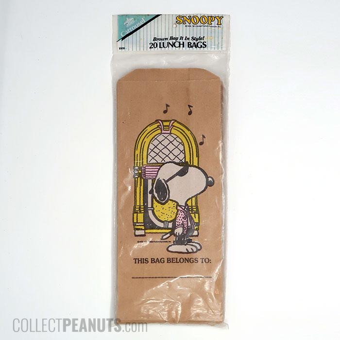 Joe Cool Snoopy in front of Juke Box Lunch Bags