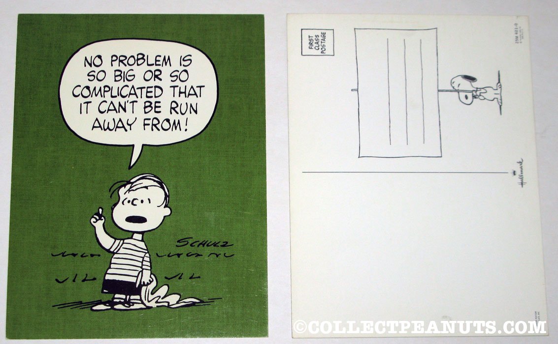 Linus 'No problem is so big or so complicated that it can't be run away from' Postcard