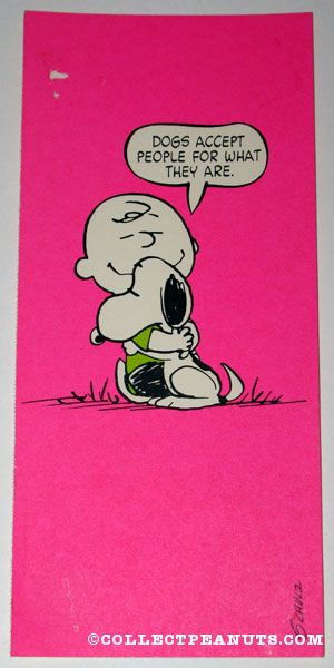 Charlie Brown hugging Snoopy ‘Dogs accept people for what they are’ Postcard