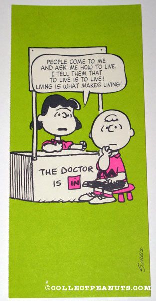 Lucy to Charlie Brown 'The World can't come to an end today because it is already tomorrow in some other part of the World' Postcard