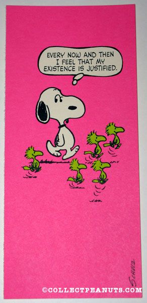 Snoopy with Woodstocks ‘Every now and then I feel my existance is justified’ Postcard