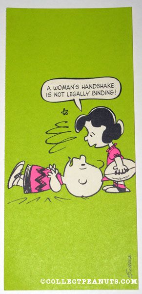 Lucy with football 'A woman's handshake is not legally binding' Postcard