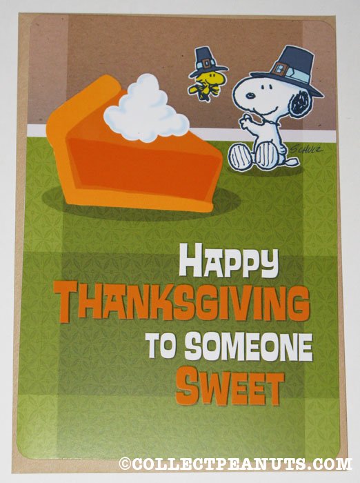 Snoopy & Woodstock pilgrims with pie ‘Happy Thanksgiving to someone sweet’ Hallmark Card
