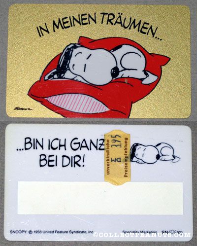 Snoopy laying on dog bed ‘in meinen traumen… bin ich ganz bei dir!’ German Wallet Greeting Card