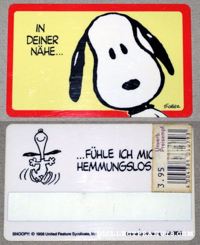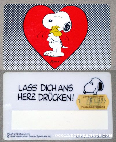 Snoopy & Woodstock hugging ‘Lass dich ans herz drucken!’ German Wallet Greeting Card