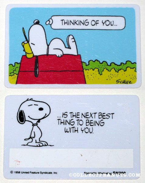 Snoopy laying on doghouse ‘Thinking of you is the next best thing to being with you.’ Wallet Greeting Card