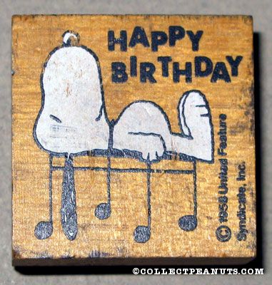 Snoopy laying on notes ‘Happy Birthday’ Rubber Stamp