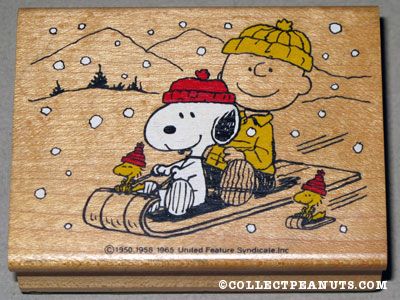 Snoopy, Charlie Brown & Woodstock sledding Rubber Stamp