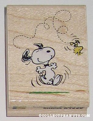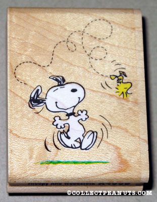 Snoopy dancing and Woodstock flying Rubber Stamp