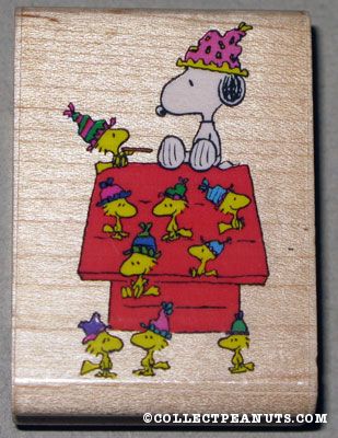 Snoopy and Woodstocks partying at doghouse Rubber Stamp
