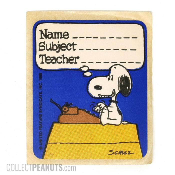 Snoopy on top of Doghouse “Name, Subject, Teacher” Sticker