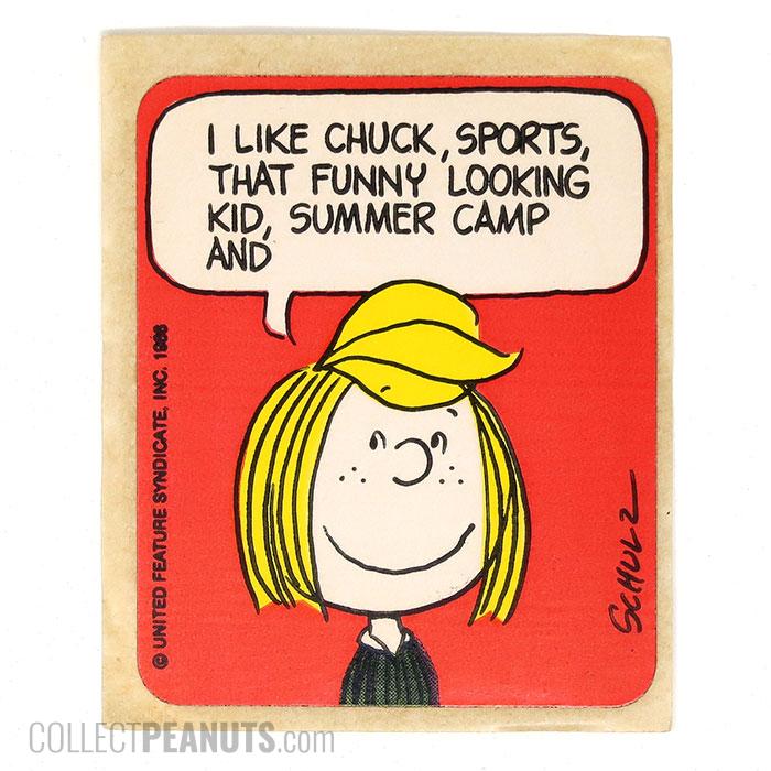 Peppermint Patty ‘I Like Chuck, Sports, That Funny Looking Kid, Summer Camp and BLANK’ Sticker