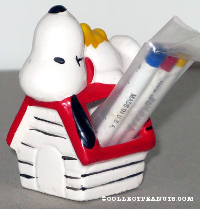 Snoopy & Woodstock laying on red roof doghouse Pencil holder