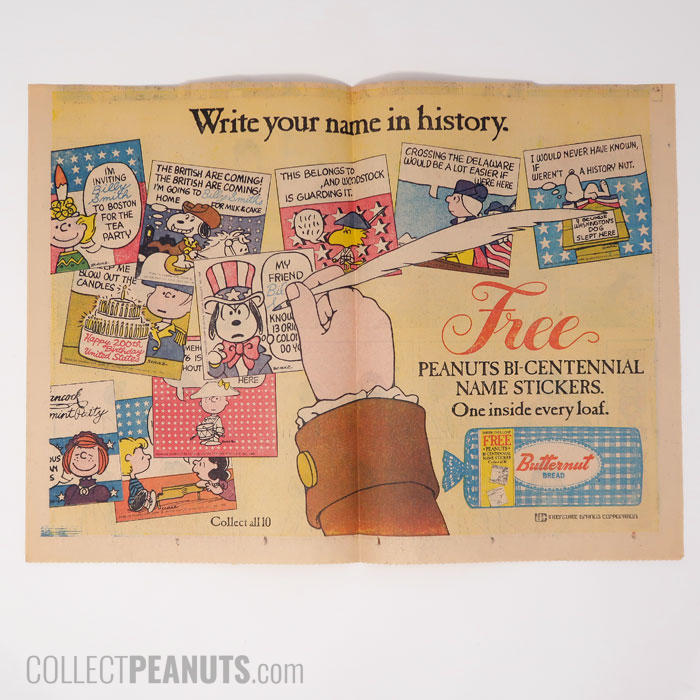 Peanuts Bi-centennial Name Stickers Butternut Bread Ad