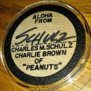 Charles Schulz Signed And Handdrawn Snoopy Aloha Wooden Nickel! Rare! – $500. Find it on eBay (affiliate links).