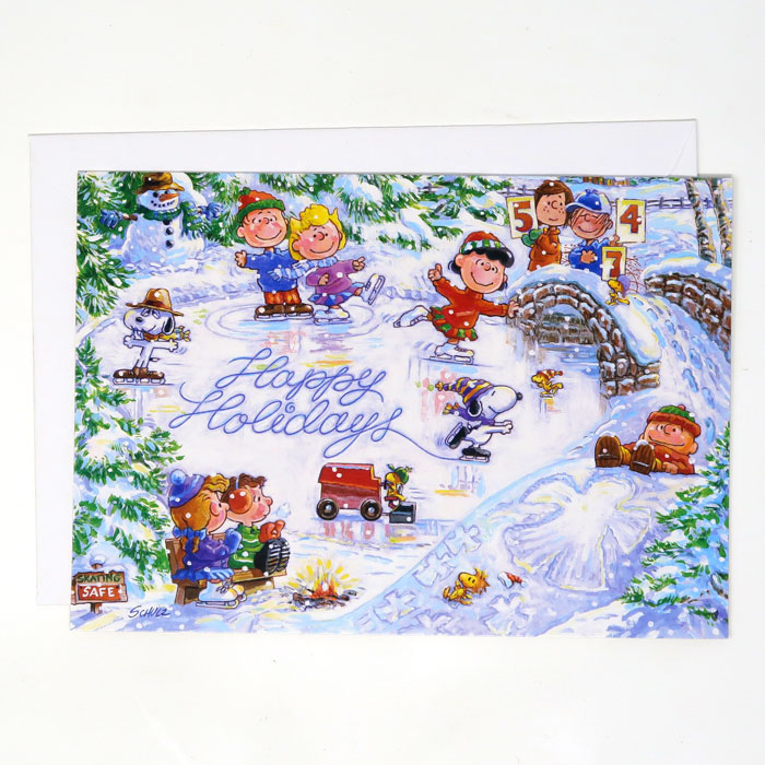 Peanuts Gang Building Snowman Christmas Greeting Card