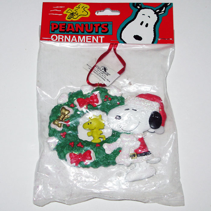 Santa Snoopy with Woodstock in Christmas Wreath Ornament