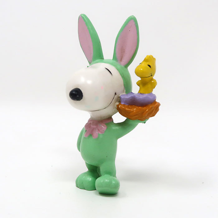 Green Easter Beagle carrying Woodstock in Nest PVC Figurine