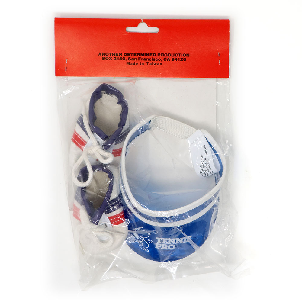 Includes tennis visor and pair of tennis shoes