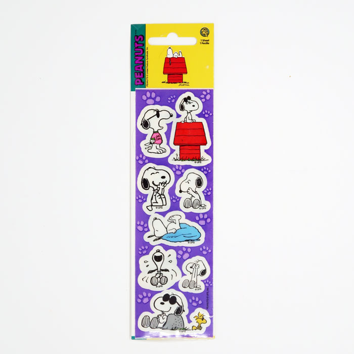 Snoopy & Woodstock multi-poses on purple paw print background Stickers